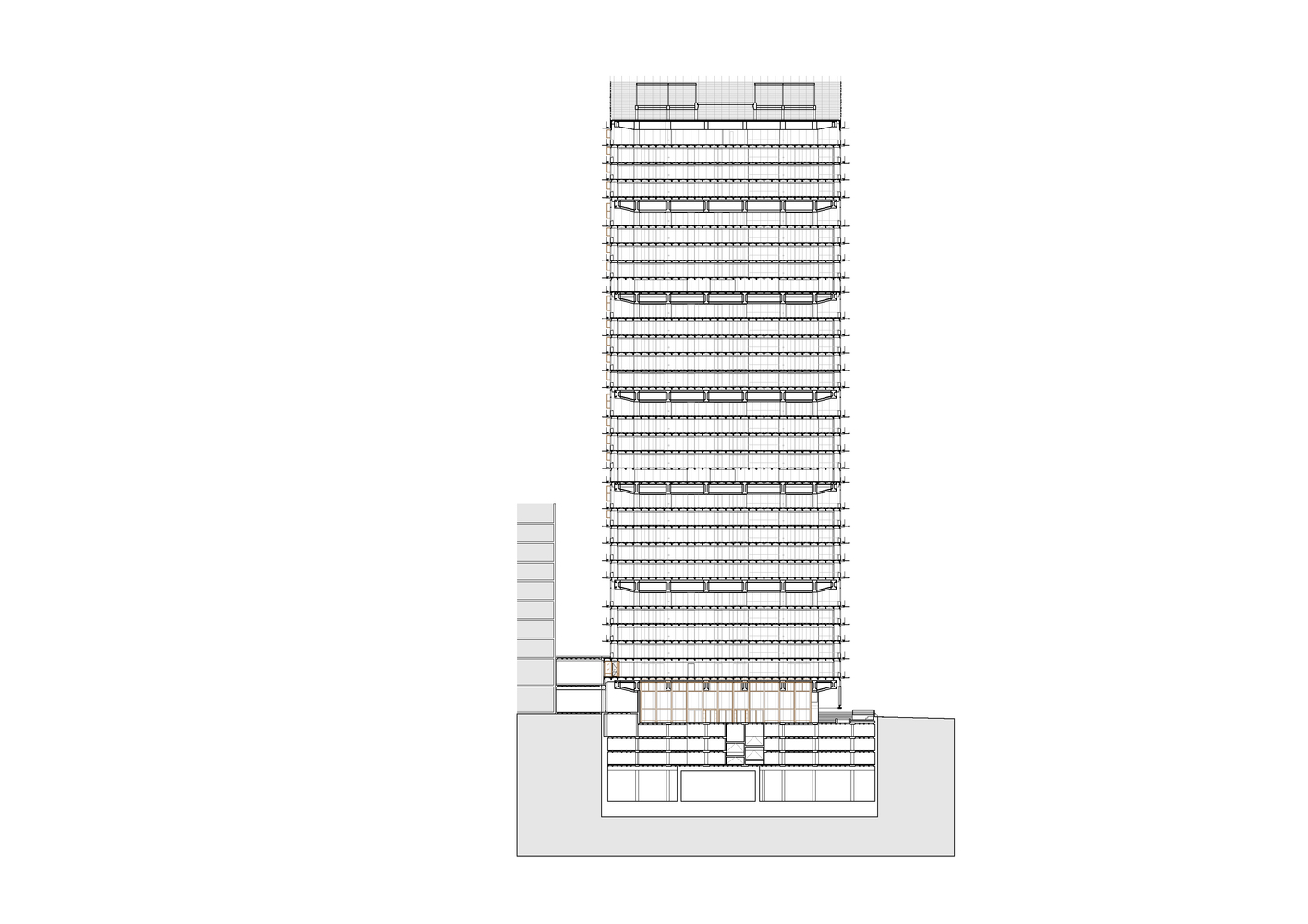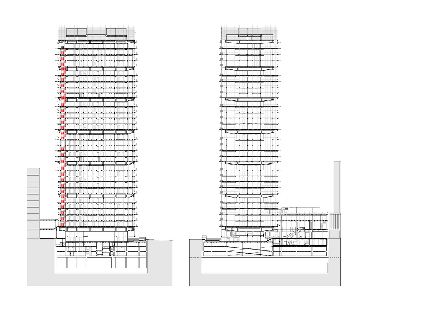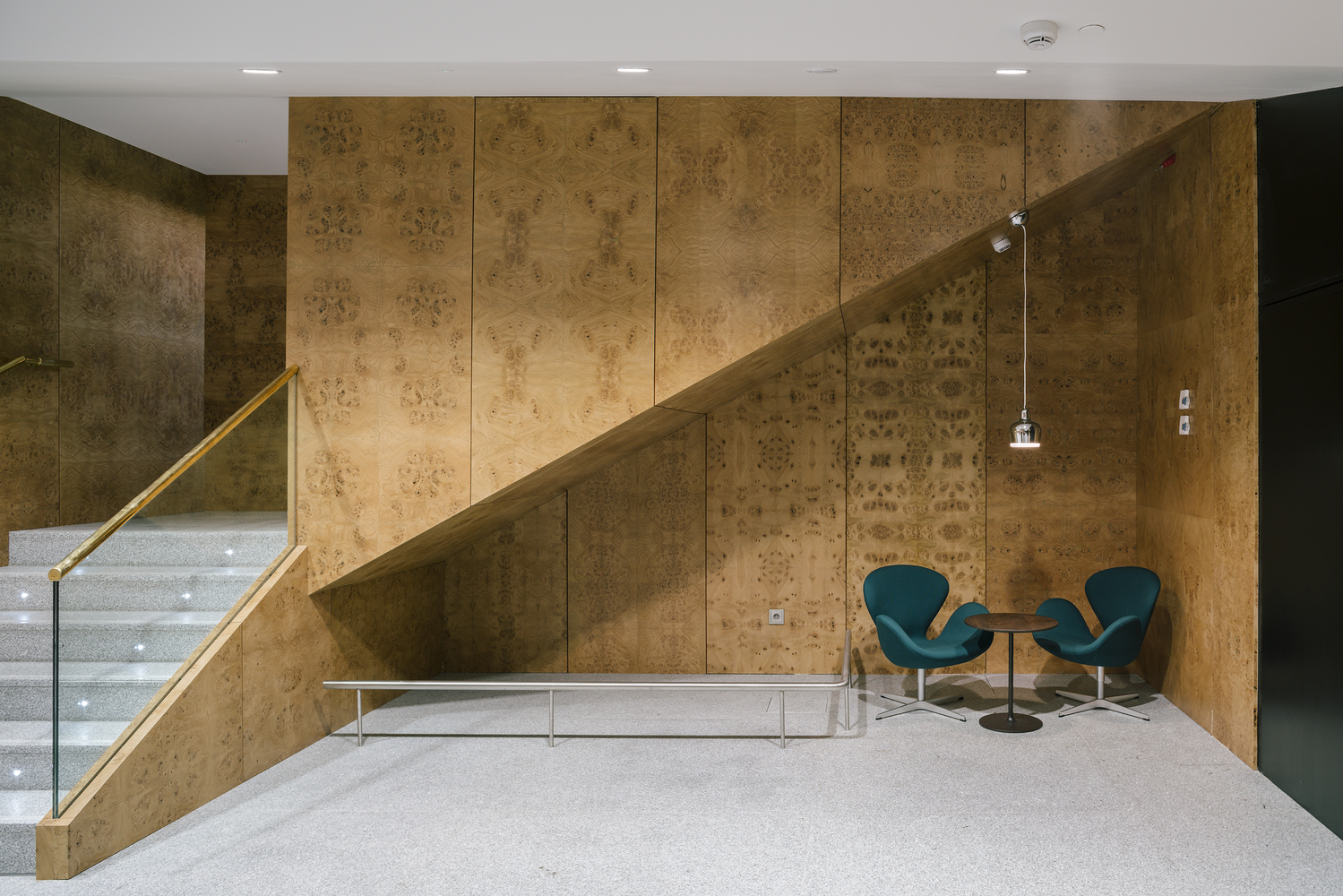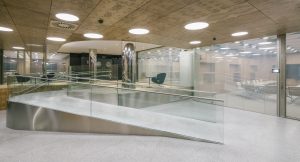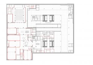 در طبقه زیرین نیز طبق معیارهایی مثل عملکرد همزمان، تطابیق پذیری و … متشکل از اتاقهای جلسات جدید و محل فیزیوتراپی طراحی شد که البته هر یک از جنبه های بنا با دقت حفظ و هیچ بخشی از طراحی اصلی تغییر نکرد.