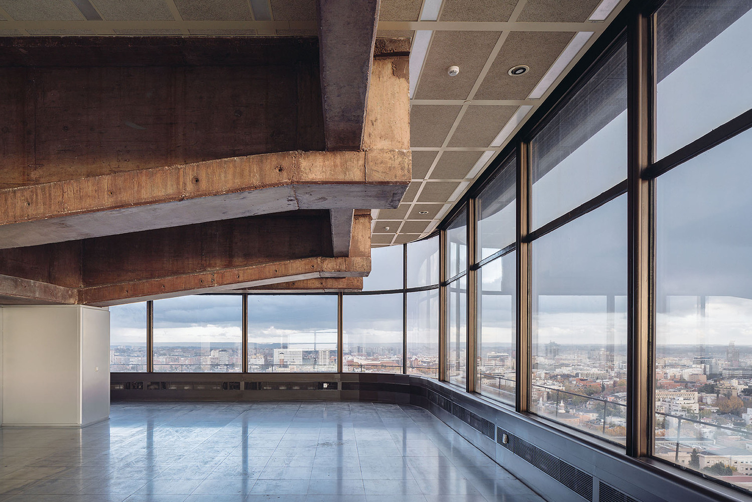 قسمت هایی از این ساختمان قریب به 40 سال پوشانده شده و یا دچار دگرگونی شده بود، عملیات بازسازی با مشاهده تکنیکی ساختمان آن هم با وسواس بالا شروع شد. برای محافظت از جو کلی ساختمان و مصالح آن بر اساس ماژولی که در طراحی به کار رفته و برای این که پایدارتر و قابل دسترس تر باشد بررسی کامل و دقیق ضرورت داشت.