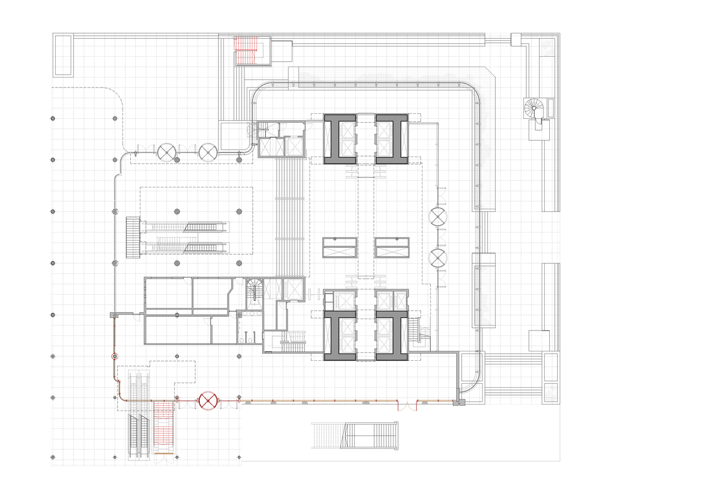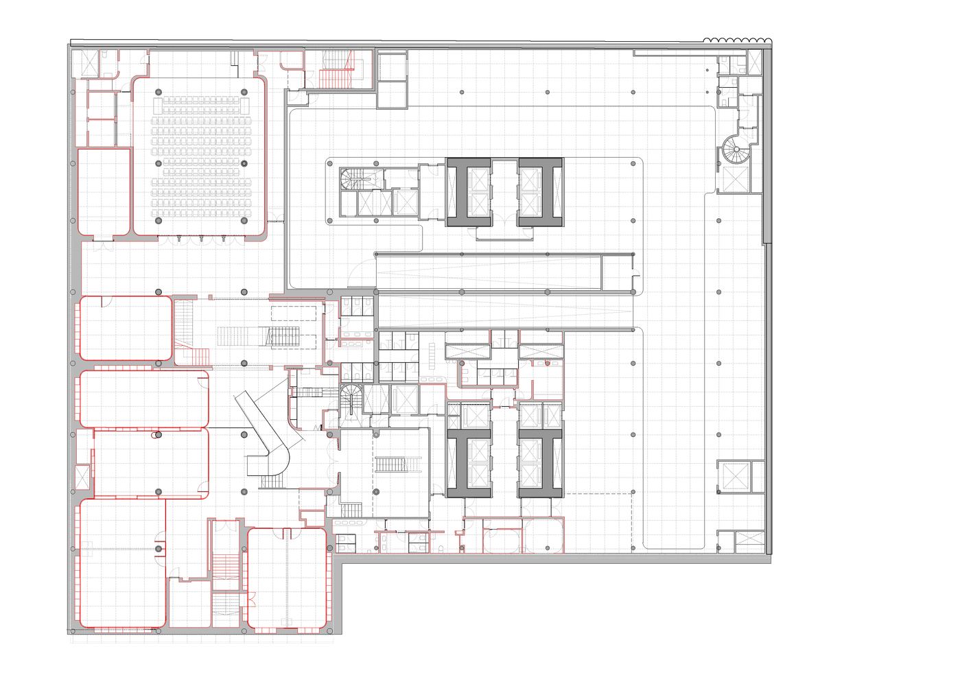 هر طرحی در این پروژه با دقت با این واحد اندازه گیری شد. نما، نقشه های کف، پله ها، سقف ها، نورپردازی و … همگی با این واحد طراحی و به طور همزمان سقف آگوستیک، بافت دیوارها، جریان هوا، رنگ خنثی کف، نوع شناسی سازه و دیگر آیتمها با هدف حفظ جو اصلی مورد توجه قرار گرفت، یک کارشناسی دقیق برای ساختمانی واقعاً استثنایی.